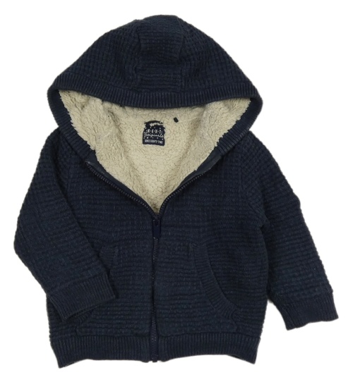 Tmavomodrý vzorovaný propínací zateplený svetr s kapucí Next