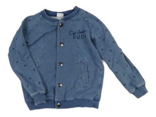 Modrá baseballová mikina riflového vzhledu s nápisy a palmami F&F