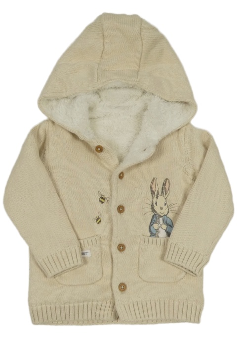 Béžový zateplený propínací svetr s králíčkem a kapucí