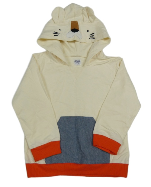 Smetanovo-modro-červená mikina s kapucí s čumákem