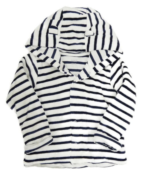Bílo-tmavomodrá pruhovaná sametová zateplená propínací mikina s kapucí M&S