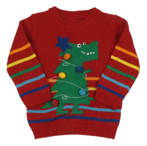 Červený svetr s dinosaurem a pruhy Nutmeg
