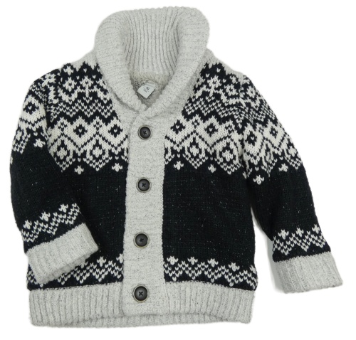 Černo-šedý vzorovaný zateplený propínací svetr Tu
