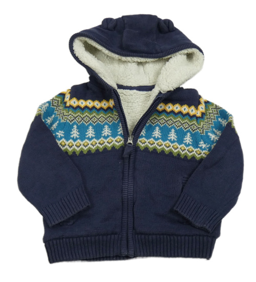 Tmavomodrý propínací zateplený svetr se vzorem a kapucí Mothercare
