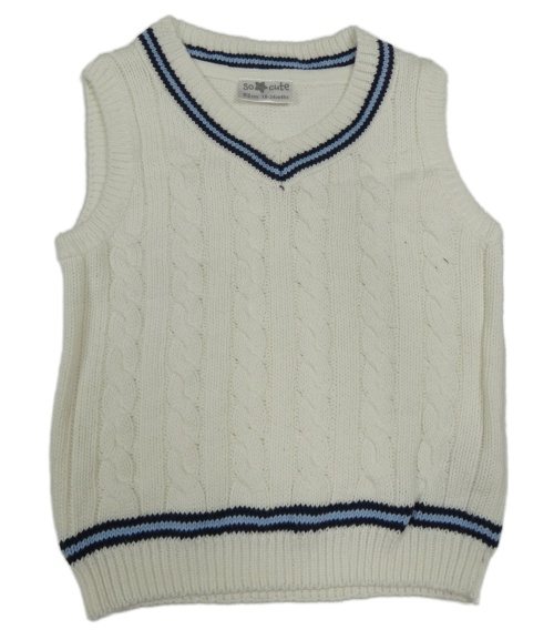 Bílá vzorovaná pletená vesta s modrým lemem Pep&Co