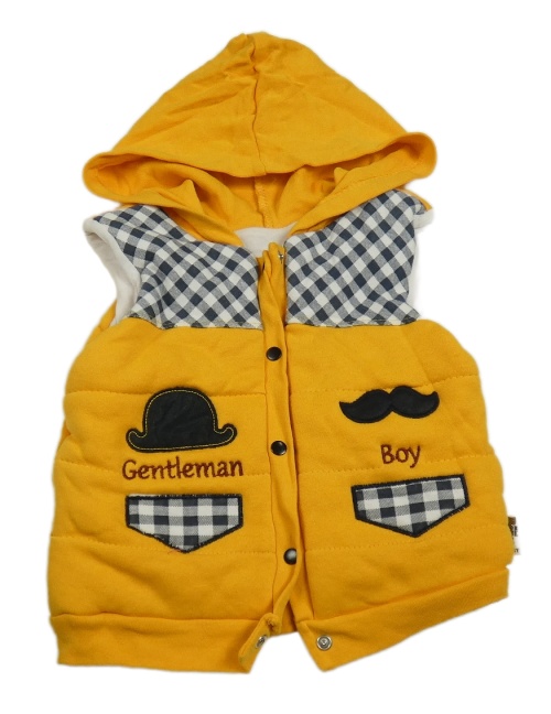 Žlutá zateplená tepláková vesta s nápisy a kapucí
