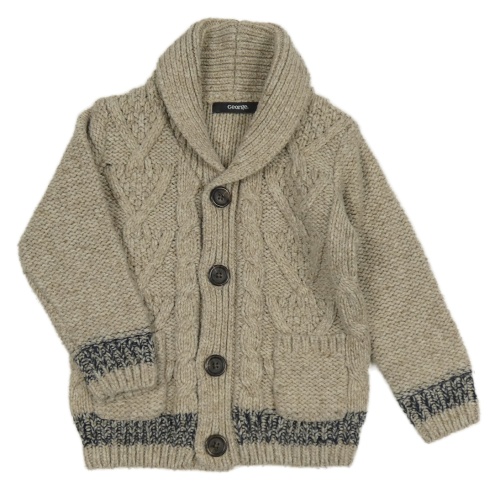Béžovo-šedý melírovaný vzorovaný vlněný propínací svetr George