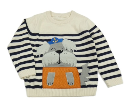 Smetanovo-tmavomodrý pruhovaný svetr s pejskem Dunnes