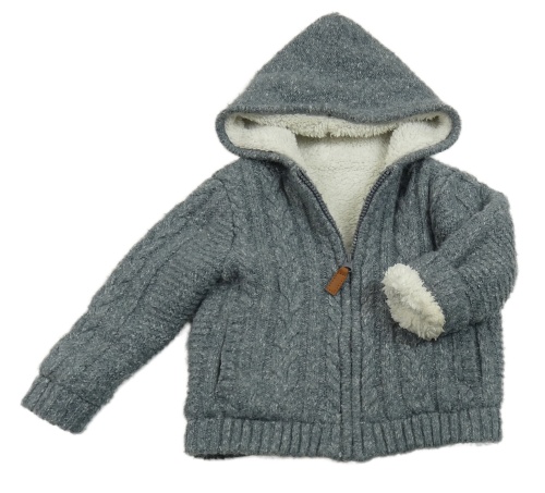 Tmavomodrý melírovaný zateplený propínací svetr s kapucí nutmeg
