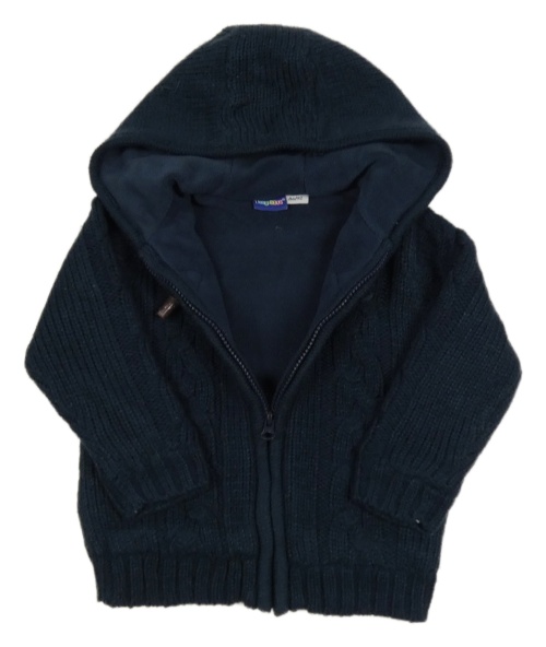 Tmavomodrý žebrovaný vzorovaný pletený propínací podšitý svetr s kapucí lupilu