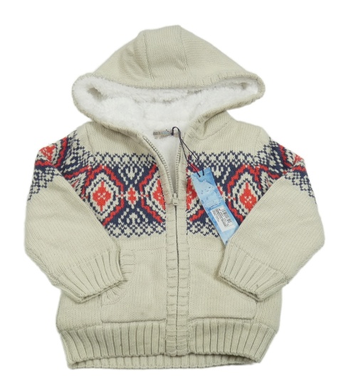 Nové - Béžovo-tmavomodro-červený propínací zateplený svetr se vzorem a kapucí M&S