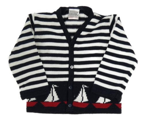 Tmavomodro-bílý pruhovaný pletený propínací svetr s lodičkami NURSERY TIME
