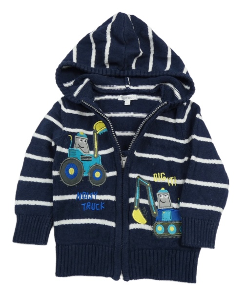 Tmavomodro-bílý pruhovaný propínací svetr s bagry a kapucí Bluezoo