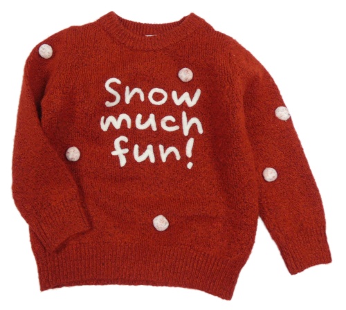 Cihlový svetr s nápisem a bambulkami Tu