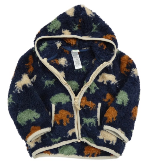 Tmavomodro-barevná chlupatá propínací mikina se zvířátky a kapucí