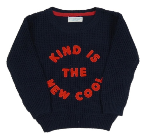 Tmavomodrý žebrovaný svetr s nápisy PRIMARK