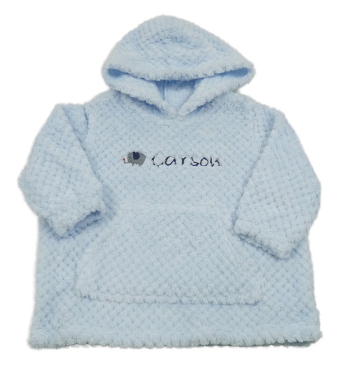 Světlemodrá chlupatá oversize mikina s nápisem a kapucí