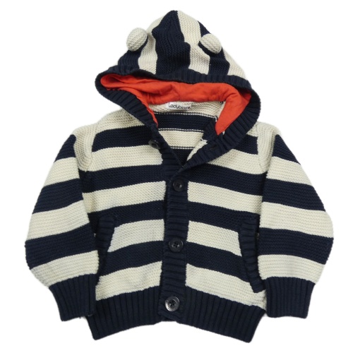 Tmavomodro-smetanový pruhovaný propínací svetr s kapucí Ladybird