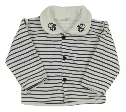 Bílo-tmavomodrá pruhovaná propínací mikina s límečkem a slony