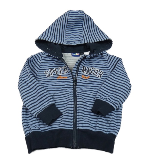 Světlemodro-tmavomodrá pruhovaná propínací mikina s nápisem a kapucí