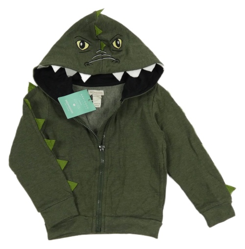 Nové - tmavozelená propínací mikina s ostny a kapucí - dino Monsoon