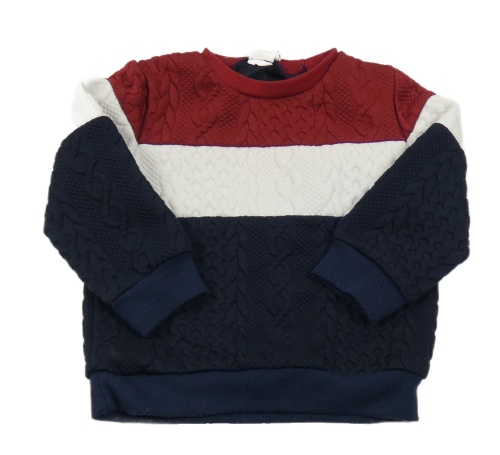 Vínovo-bílo-tmavomodrá vzorovaná mikina