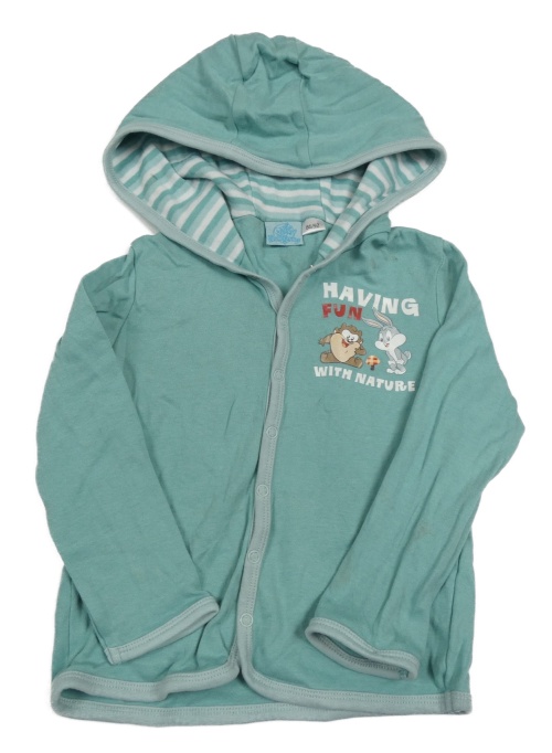 Zelená lehká propínací mikina s Bugs Bunnym s Tazem a kapucí