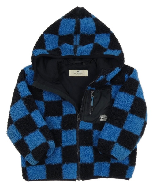 Modro-černá kostkovaná huňatá podšitá propínací mikina s kapucí H&M