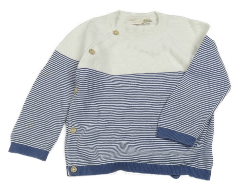 Tmavomodro-bílý zavinovací propínací svetr s pruhy lupilu