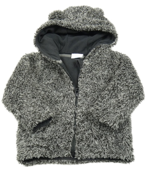 Černo-bílá melírovaná chlupatá podšitá propínací mikina s kapucí topomini