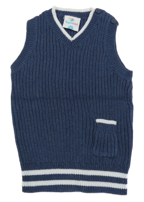 Tmavomodrá pletená žebrovaná vesta s proužkem Topomini