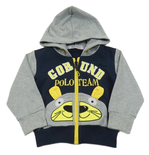 Šedo-tmavomodrá propínací mikina s medvědem a kapucí