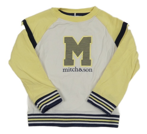 Bílo-žluto-modrá mikina s písmenem a logem Mitch&Son