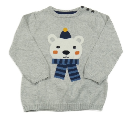 Šedý melírovaný lehký svetr s medvědem H&M