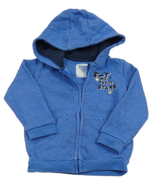 Modrá melírovaná propínací mikina s nápisy a hvězdičkami a kapucí lupilu