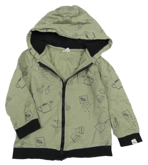 Khaki-černá propínací mikina s obrázky a kapucí