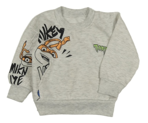 Světlešedá melírovaná mikina s nápisy - Želvy Ninja