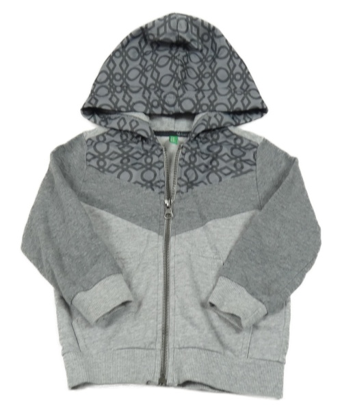Šedá melírovaná propínací mikina se vzoram a šusťákovou kapucí Benetton
