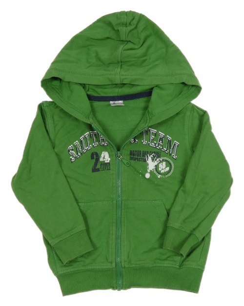 Zelená propínací mikina nápisem a kapucí Papagino