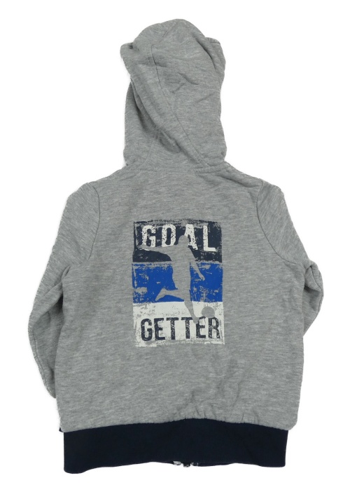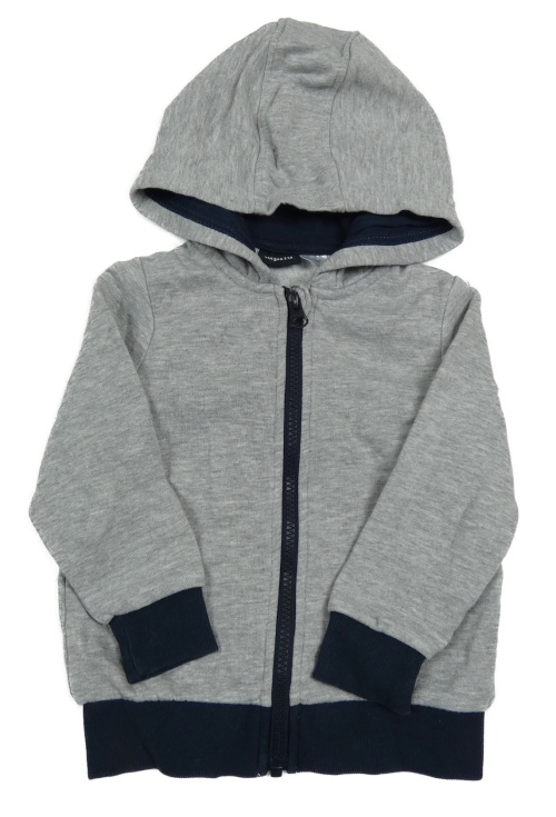 Šedo-tmavomodrá propínací mikina s nápisem a kapucí Lupilu