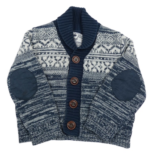 Tmavomodro-světlešedý vzorovaný propínací svetr Rebel