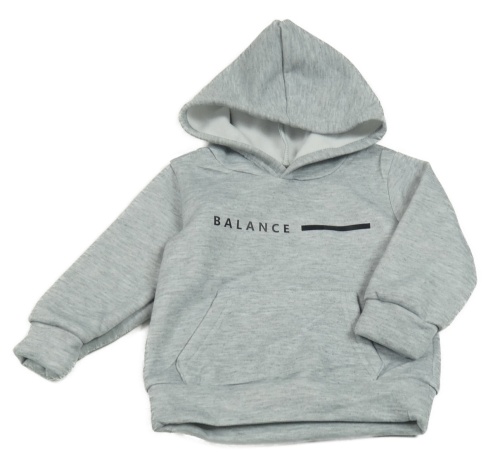 Světlešedá melírovaná mikina s nápisem a kapucí