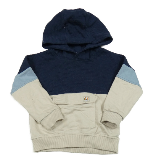 Tmavomodro-béžová mikina s kapsou a kapucí