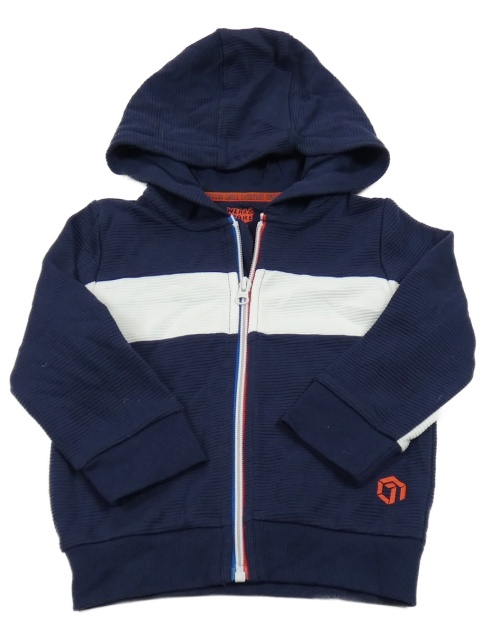 Tmavomodrá žebrovaná propínací mikina s bílým pruhem a kapucí F&F