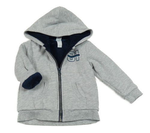 Světlešedá melírovaná zateplená propínací mikina s číslem a kapucí