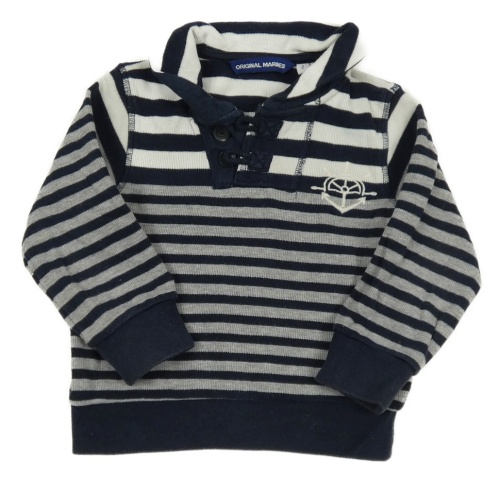 Tmavomodro-šedo-světlešedá pruhovaná mikina s výšivkou a límčkem Original Marines