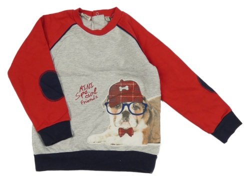 Šedo-červená mikina s pejskem