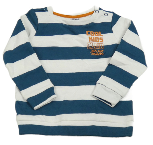 Bílo-petrolejová pruhovaná mikina s nápisem Dopodopo