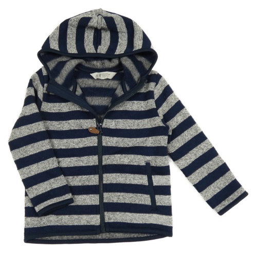 Tmavomodro-šedá pruhovaná pletená propínací mikina s kapucí H&M