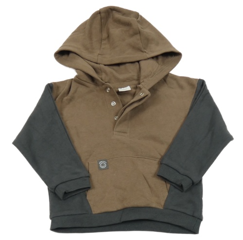 Tmavohnědo/šedá mikina s kapsou se smajlíkem a kapucí Next